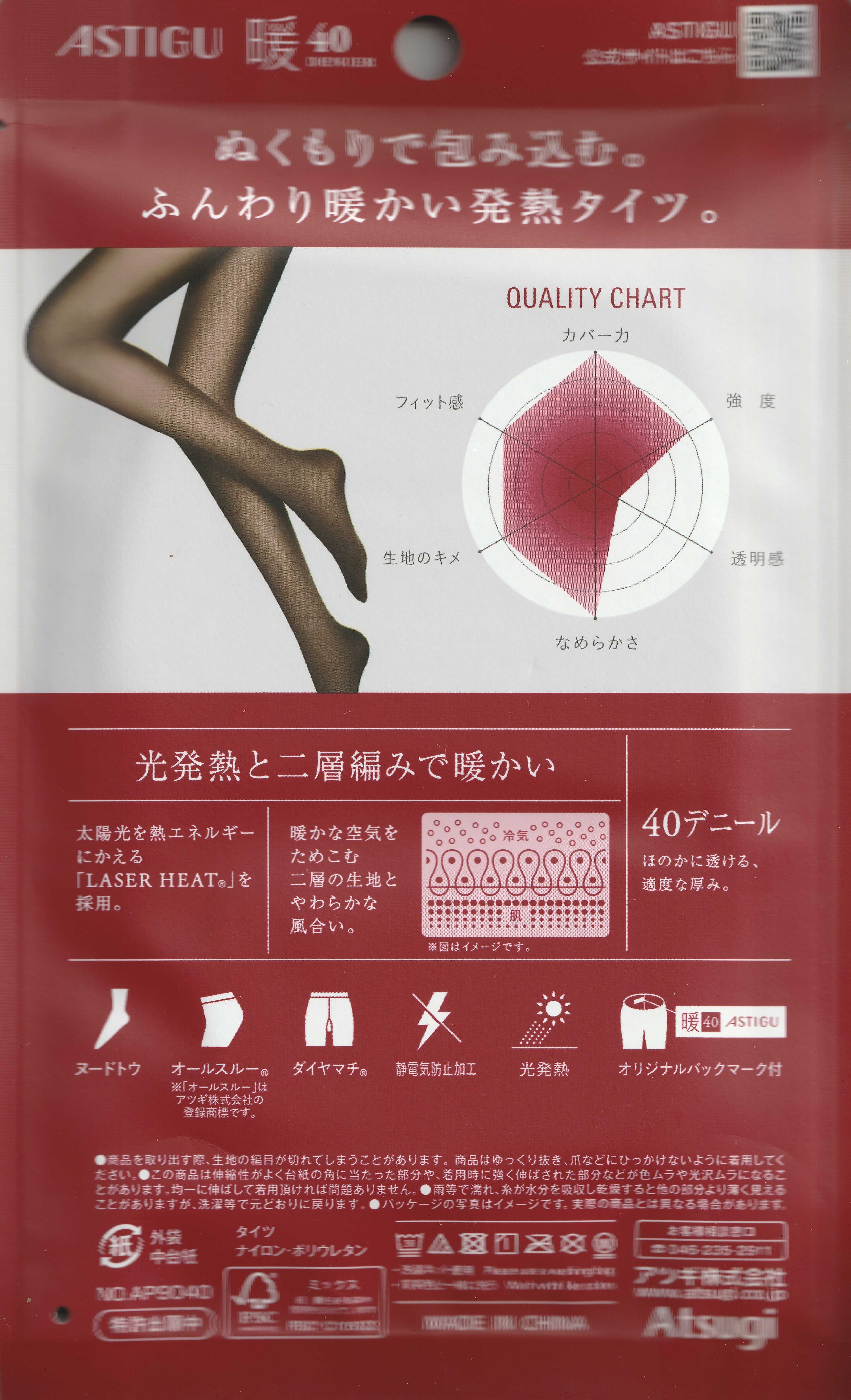 【アスティーグ 暖】アツギASTIGU 40D L〜LL