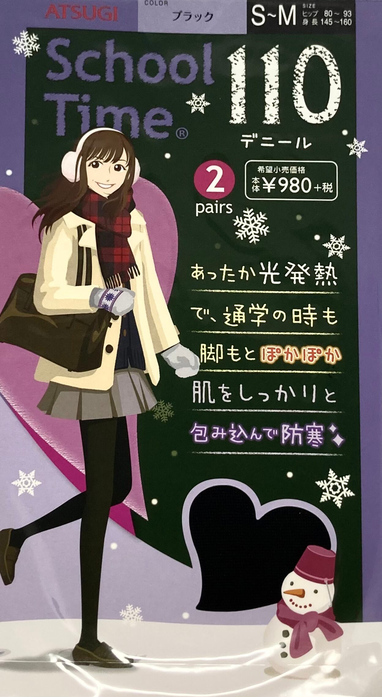 【スクールタイム】2足組 SMサイズのみ 110D 黒タイツスクールタイツ