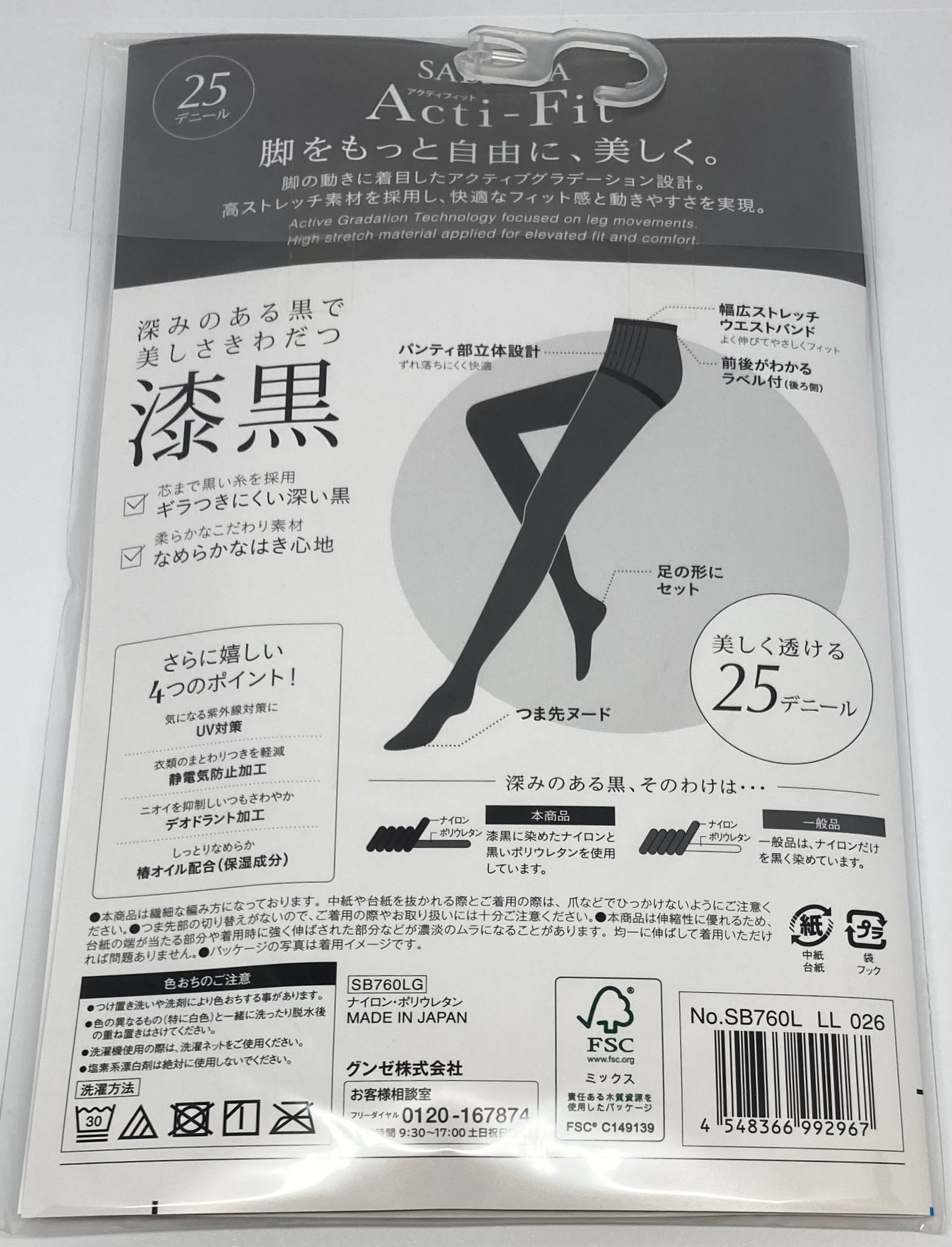 【サブリナ漆黒】アクティフィット 漆黒 25デニール L~LL ブラック